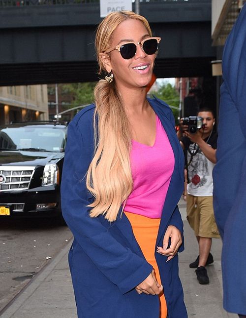 The Carters have been working up a storm in NYC as of late. The twosome were spotted for the second night in a row leaving their midtown office and then the recording studio. Check out Beyoncé's neon hotness inside...